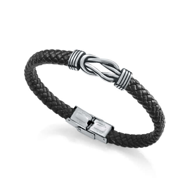 PULSERA NUDOS ACERO PIEL NEGRA SR FN