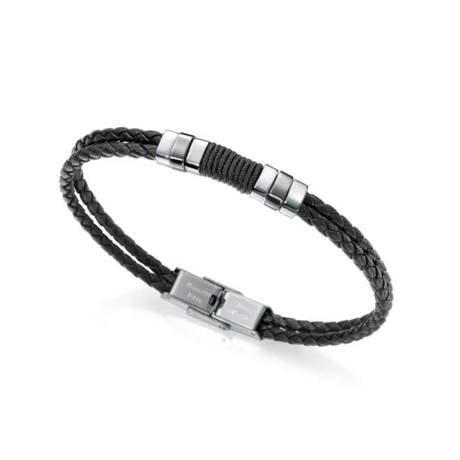 PULSERA ACERO, PIEL Y IP NEGRO SR FASHION