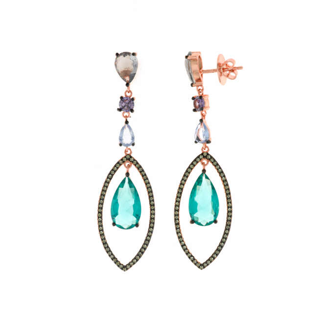 PENDIENTES PLATA ROSA CRISTAL PERA VERDE SALVATORE