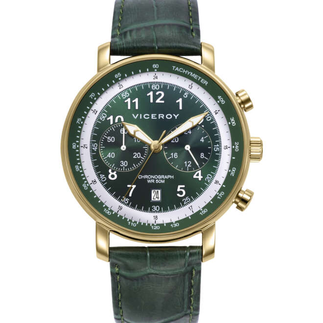 RELOJ VICEROY CRONO ACERO IP DORADO CORREA HOMBRE