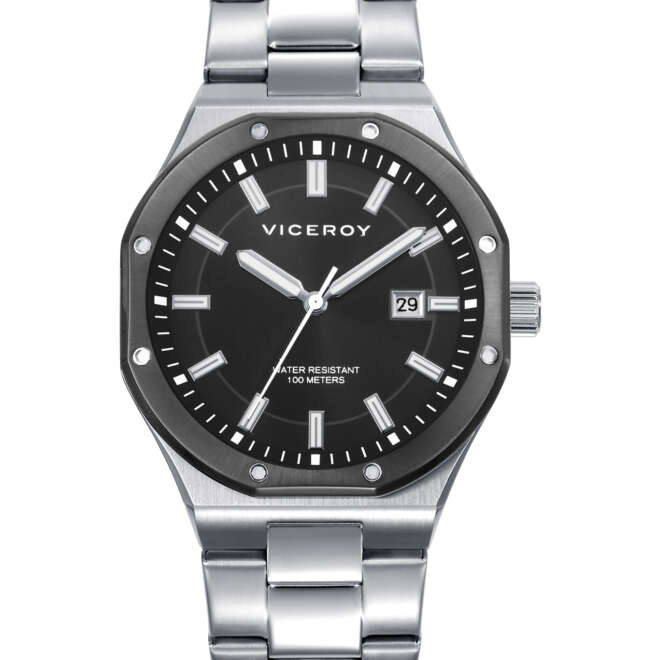 RELOJ VICEROY CRONO ACERO NEGRO BRAZALETE HOMBRE