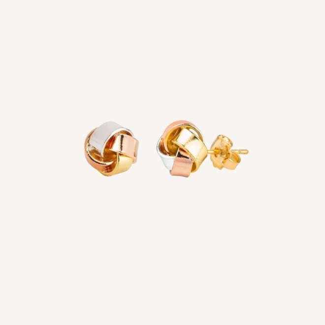 PENDIENTES NUDO TRICOLOR CHAPADO ORO VIDAL & VIDAL