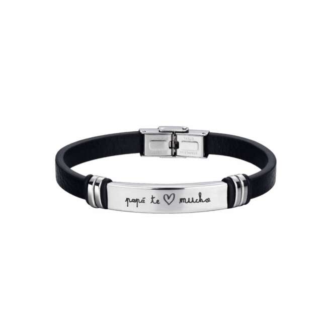 PULSERA NUDOS ACERO PIEL NEGRA SR FN