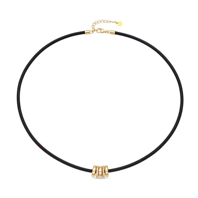 Gargantilla cuero abalorio plata chapado oro 18k