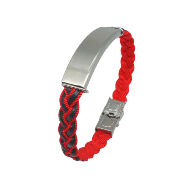 pulsera acero TRENZA color rojo Y negro IVOIRE