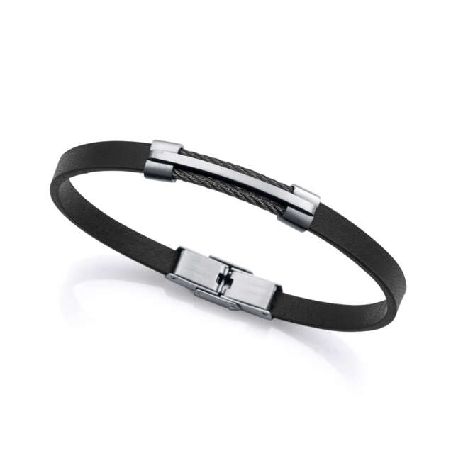 PULSERA VICEROY ACERO IP GRIS Y PIEL NEGRA HOMBRE