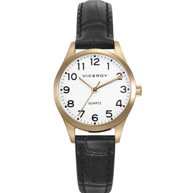 RELOJ VICEROY ACERO IP DORADO CORREA NEGRA