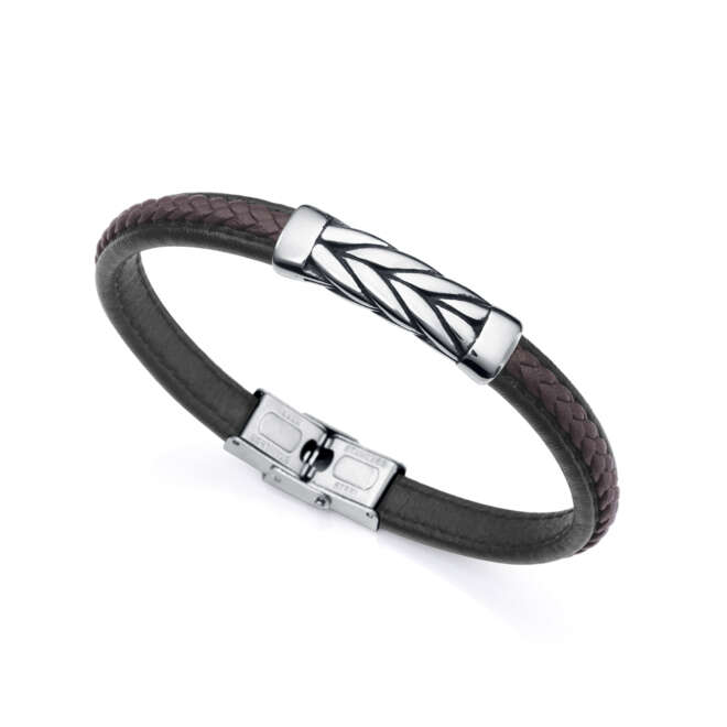 PULSERA VICEROY ACERO Y PIEL NEGRA Y MARRÓN HOMBRE