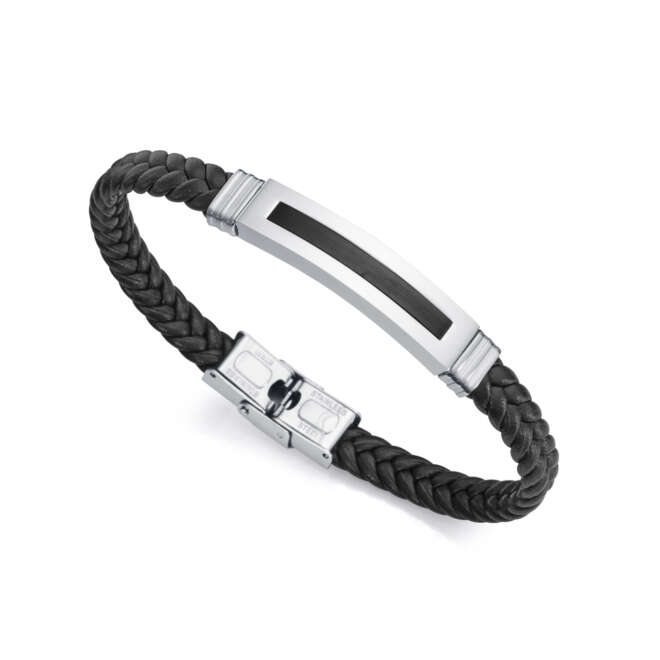 PULSERA VICEROY ACERO PLACA PIEL NEGRA HOMBRE