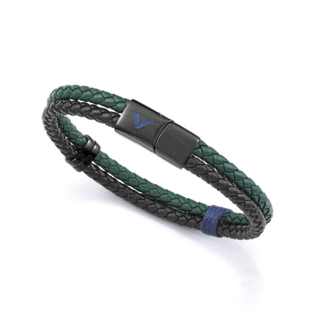 PULSERA VICEROY ACERO Y PIEL NEGRA Y VERDE HOMBRE