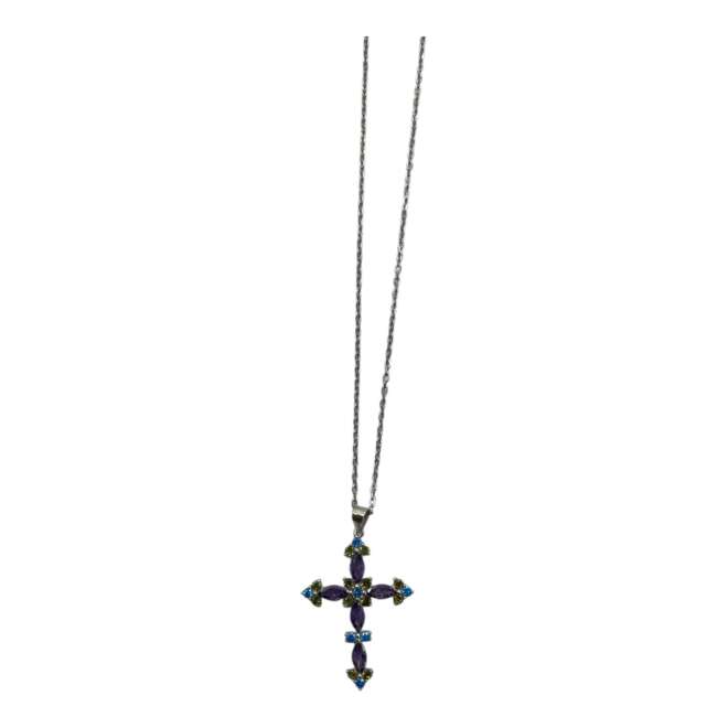 GARGANTILLA PLATA CRUZ CIRCONITAS AMATISTAS