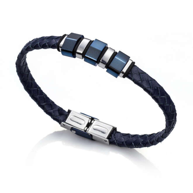 PULSERA ACERO, PIEL Y IP AZUL SR FASHION