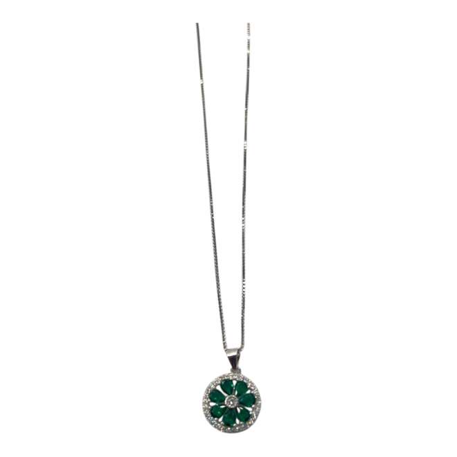 GARGANTILLA PLATA ROSETA CIRCONITAS VERDE BLANCA