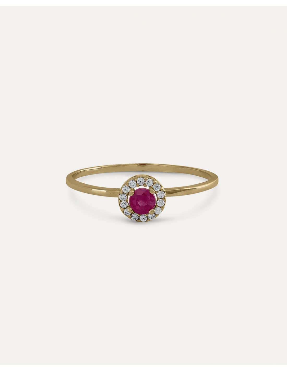 Anillo round rubí y diamantes oro 9K