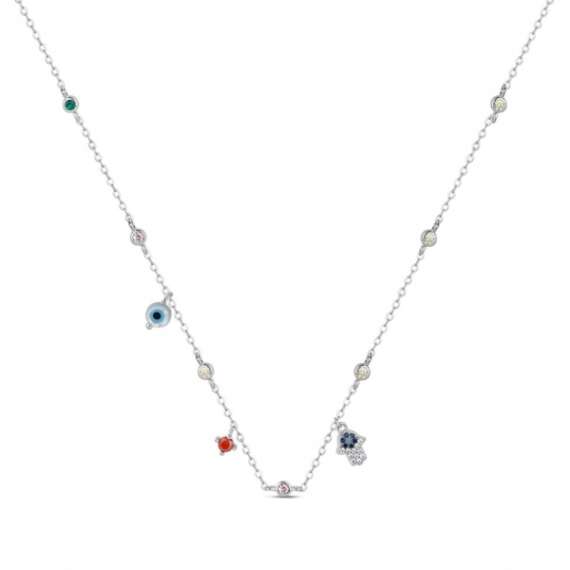 Collar de plata rodiado con colgantes de la suerte y piedras de color 38 + 5 cm
