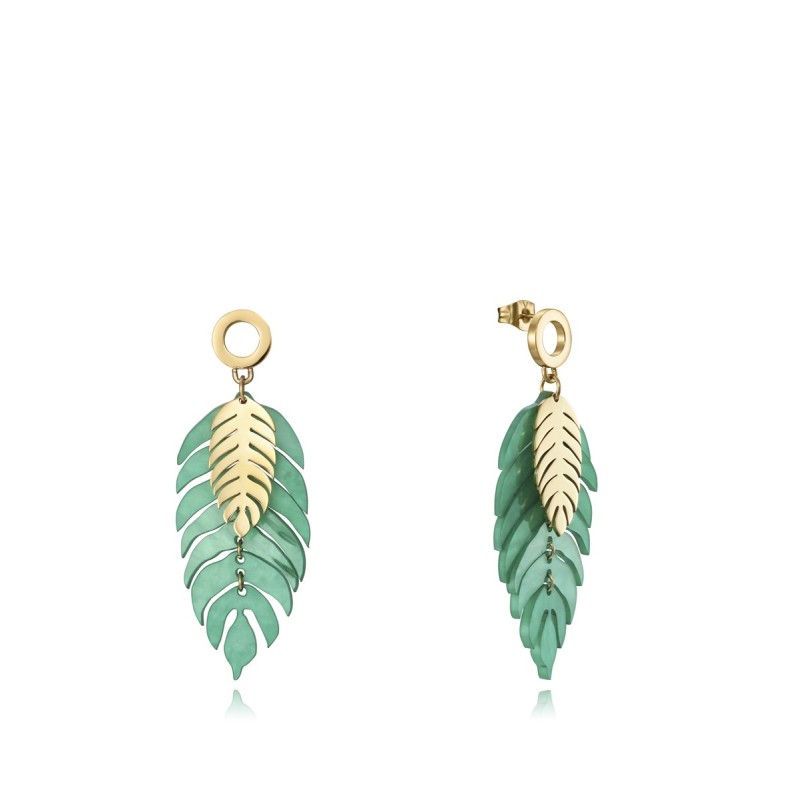 PEND ACERO DORADO DOBLE HOJA RESINA VERDE VICEROY