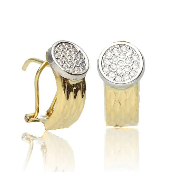 Compararpendientes de oro de 18 kilates con círculo de circonitas sobre oro blanco, cierre omega. 14.8×7 mm.