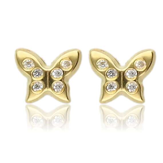 Compararpendientes oro mariposa mini circonitas. 5×4 mm. Cierre rosca