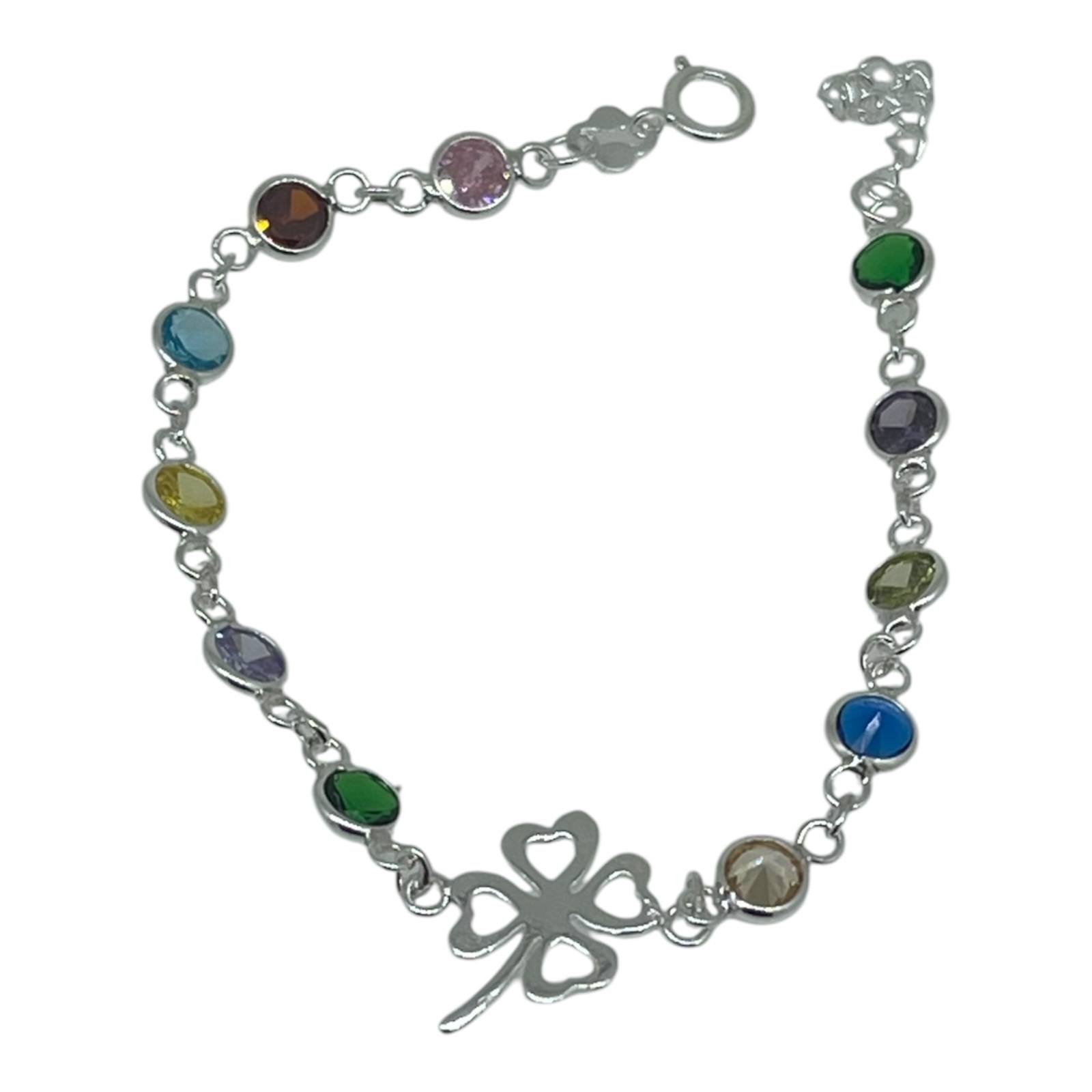 pulsera plata trébol circonitas color