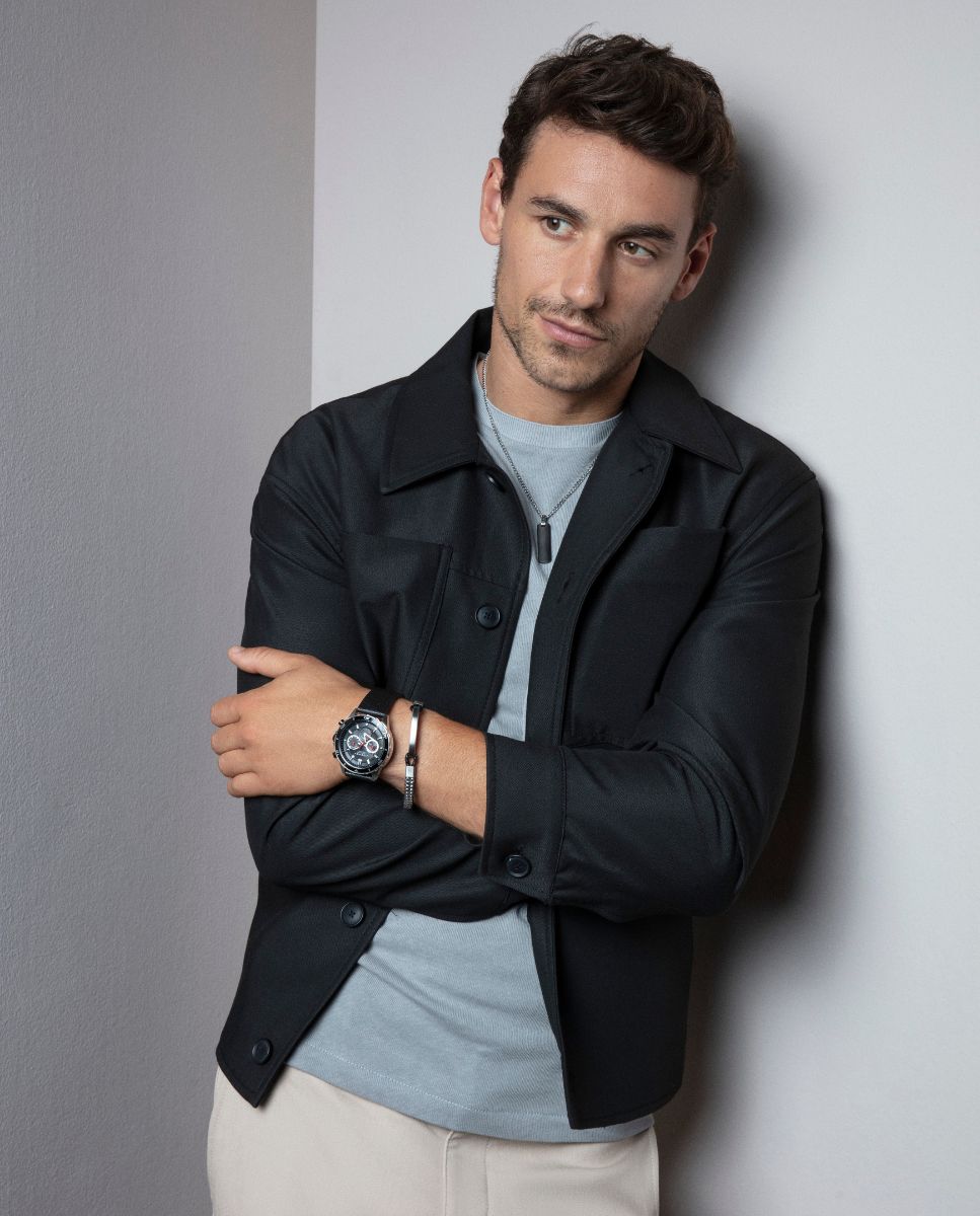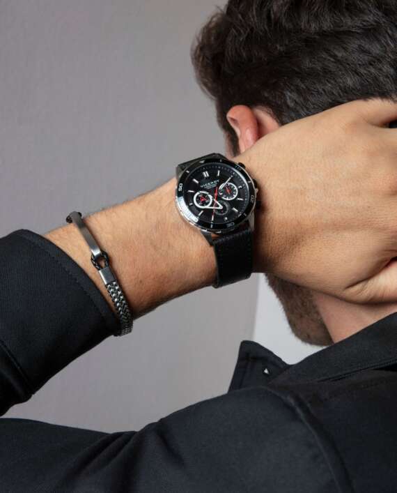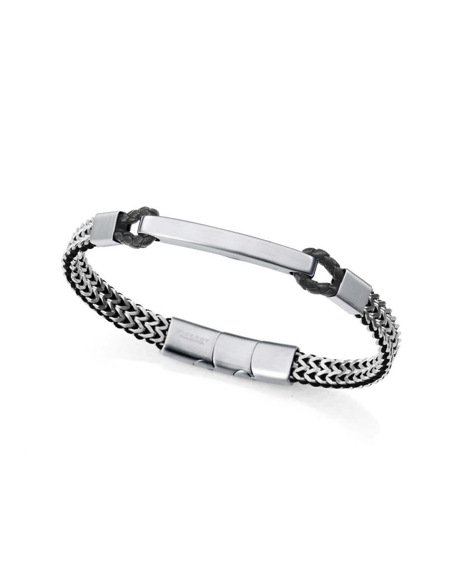 PULSERA VICEROY ACERO Y PIEL NEGRA HOMBRE
