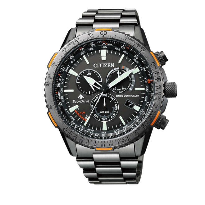 Caja de acero, 11,7mm. grosor con fondo cerrado a rosca transparente. Brazalete de acero sólido. Cristal de Zafiro. Luminous en agujas e índices. Calendario con lupa. WR 5 bar.