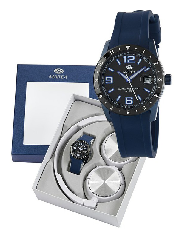 Reloj Marea Infantil Comunión Niño B35318/10 Sport Negro y Auriculares Bluetooth. Caja de acero. Correa de silicona negra. Esfera negra. Bisel negro. Calendario. Auriculares bluetooth. Sumergible 100m.